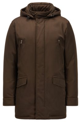 Green feather down leather and wool Fabrizio coat from Mackage featuring a hood long sleeves a front zip fastening and a drawstring waist.